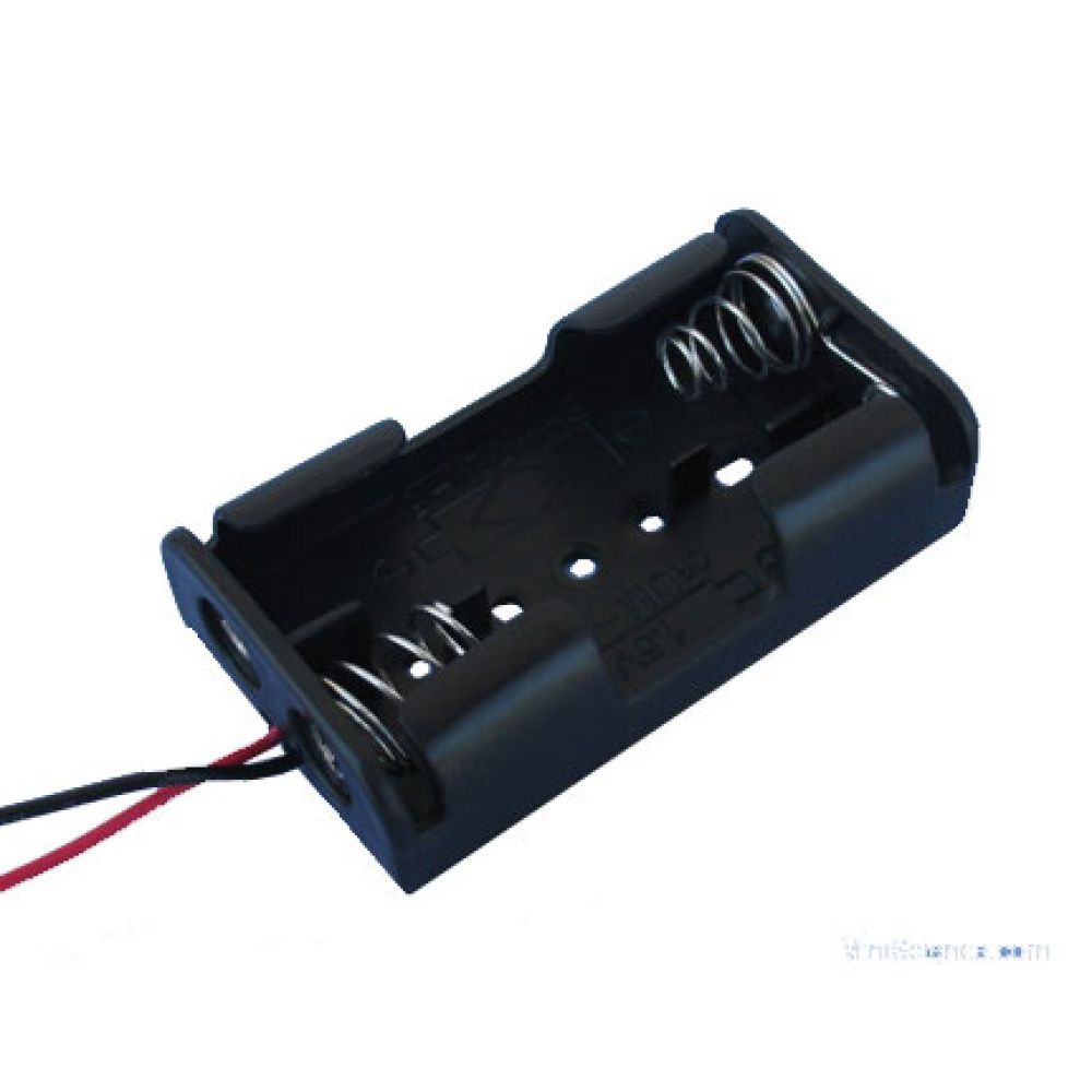 Material Plastic Battery Type AA Battery Capacity 2 Output Voltage 3 Volts Wire Length 6 Inches Wire Colors Red and Black Direction of Battery Placement Clearly Marked Additional Features Curved Side Walls for Secure Battery Holding