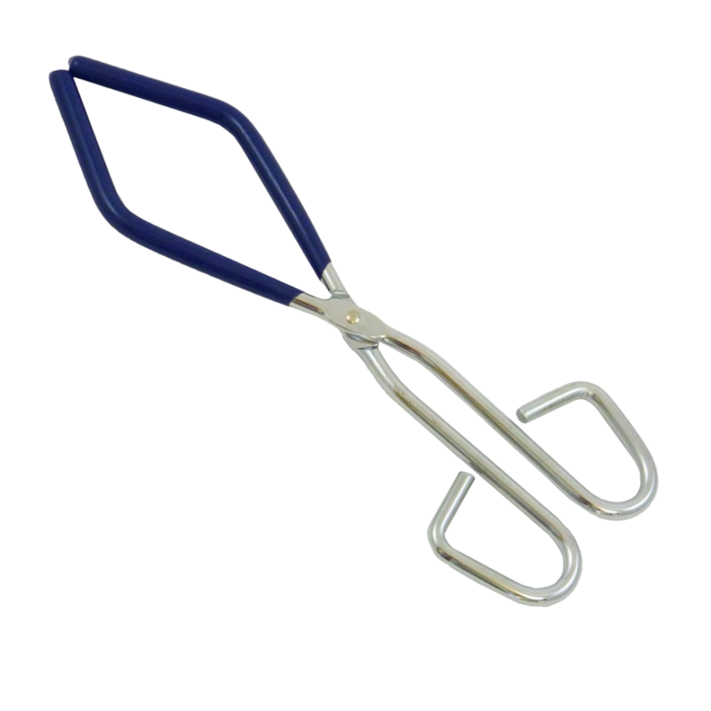 • Crucible Tong, Plastic Jaw - For Handling Crucibles 10-50mL Capacity. These 10" Long Tongs Have A Firm But Gentle Grip And The Plastic Type Coating Helps To Prevent Slipping. The Plastic Coated Jaws Will Withstand Temperatures Up To 120 Degrees Centigrade. Made Of Nickel Plated Steel Coated.