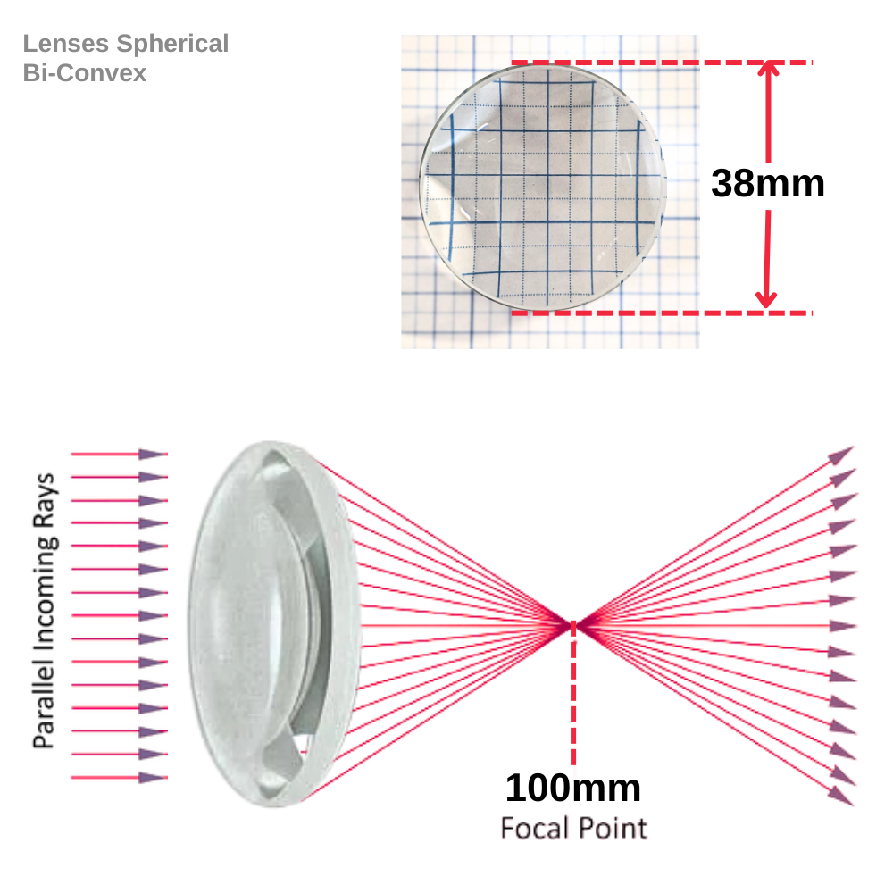 Lenses Spherical, Bi-Convex, 38 Mm Diameter 100Mm